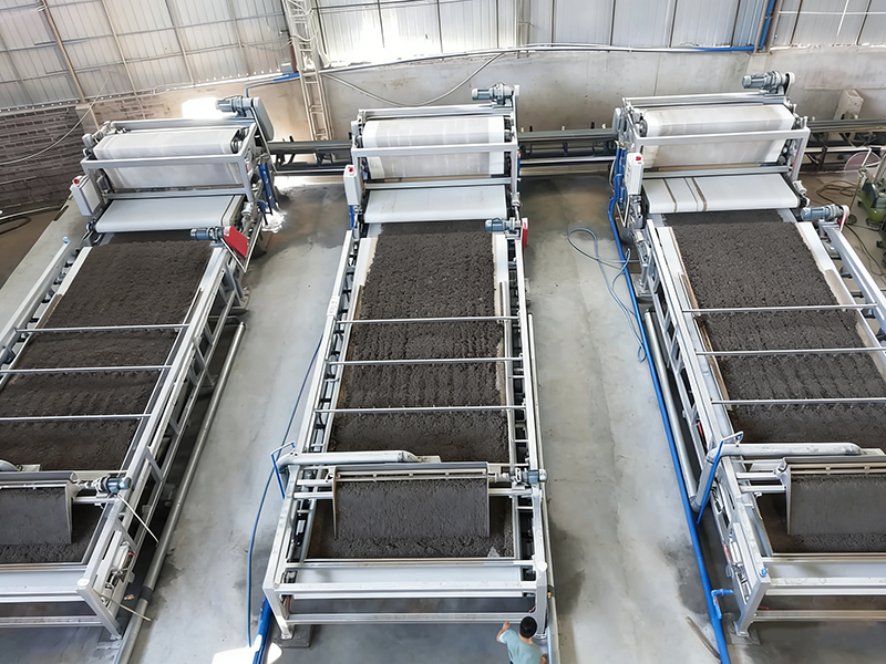 4.The rollers press against rollers with the two belts between them, and dewater the pu